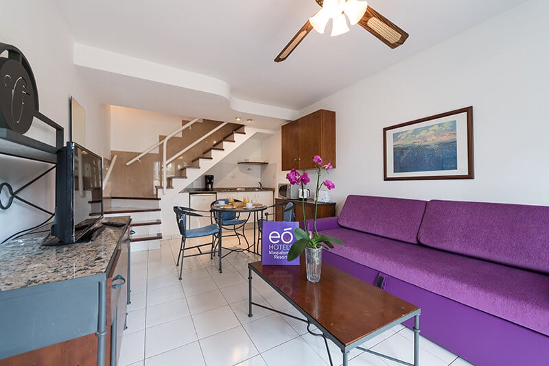 Comfort and convenience are top priorities at eó Maspalomas Resort with its twin-level apartment-style rooms, set out around the two swimming pools, the restaurant, and extensive gardens. This means that as well as being peaceful and independent, everything is only a few steps away, making this a very welcoming resort.