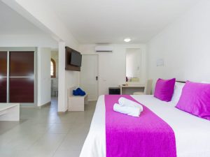 The hotel has elegant accommodation air conditioned with Satellite TV and a small terrace giving access to a private garden.