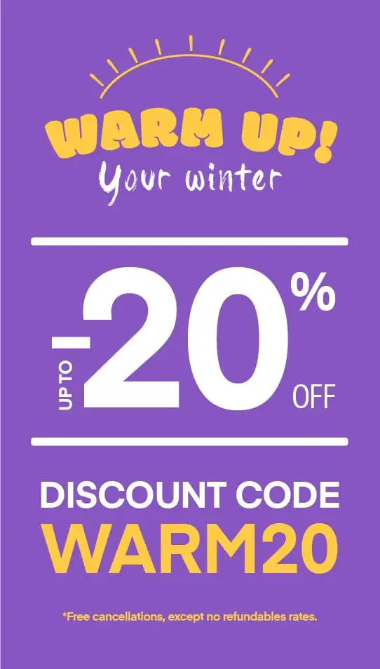 Enter the PROMOTIONAL CODE WARM20 in our booking engine or click on APPLY NOW and up to 20% discount will be automatically applied to you.