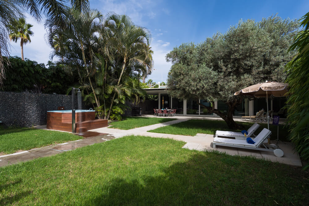 eó Maspalomas Villa es una confortable vivienda de lujo completamente equipada que dispone de una gran intimidad y una amplia zona de jardín con conexión wifi en todas sus estancias. Situada en las inmediaciones del Campo de Golf de Maspalomas, la villa consta de una edificación de 1 sola planta de 190m2, un jardín de 300 m2, aparcamiento privado para 4 vehículos y un segundo solárium independiente de alrededor de 90 m2.